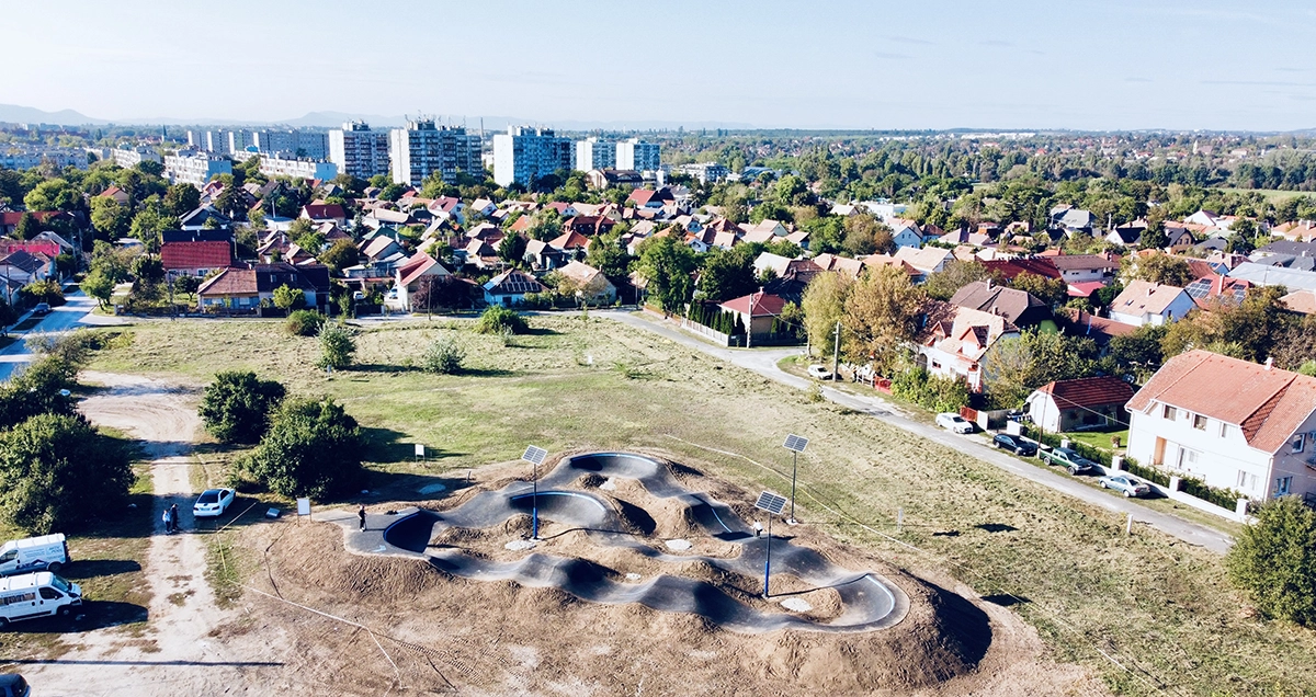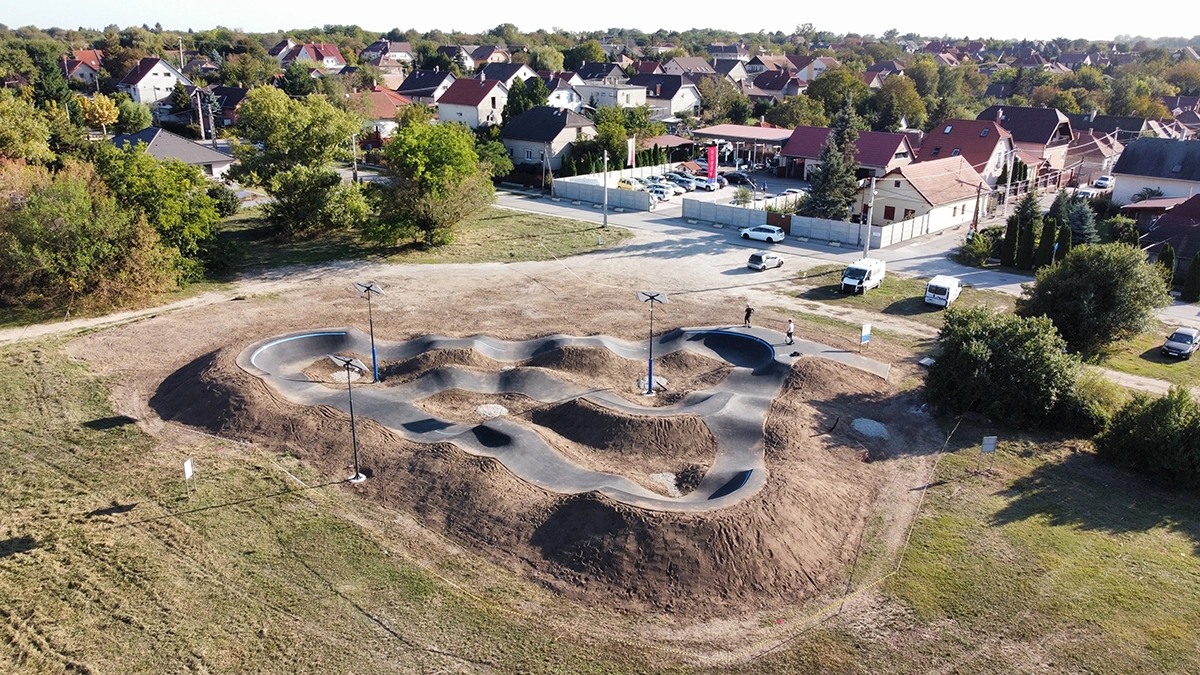 Elkészült, de még nincs átadva a Budapest XVII. kerületi pályánk! Ez a harmadik Budapesten található pumptrack-ünk, a XVI. és a XIX. kerületi pályák mellett. A Multi-típusú pálya nyomvonalában helyet kapott 3 db asztalos ugrató, így a kreatív vonalvezetés mellett a repülni vágyó felhasználóknak is kedveztünk. Újításunk az oldalirányba döntött hullámok is megjelennek, olyan menni rajta mintha hullámvasúton ülnénk! Parkolási lehetőség van, ivókút és egyéb kültéri eszközök telepítése folyamatban. Kihelyeztünk 3 db napelemes lámpát is, aminek köszönhetően az óraátállítás után is lehet majd bringázni az őszi és téli időszakban.